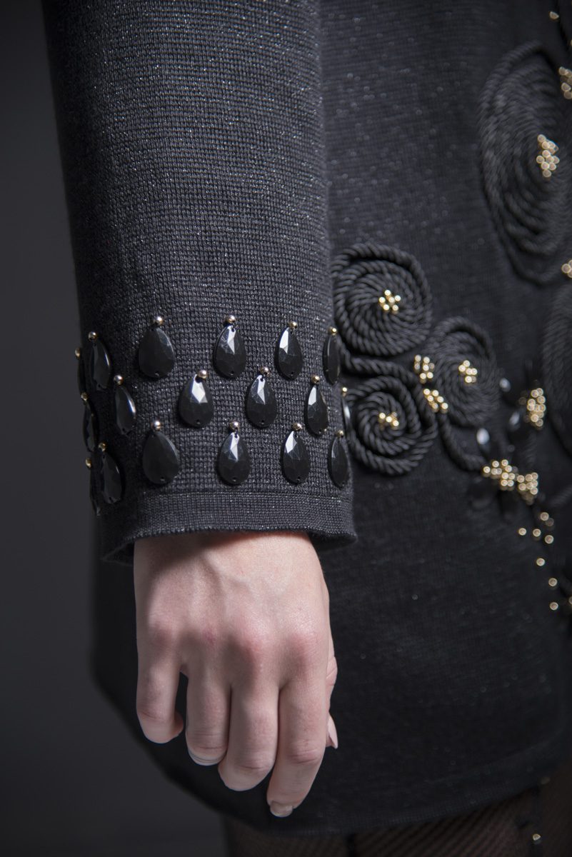 “Belle âme” is flooded with knit patterns, cozy wools and metallic yarns. Elaborate embroideries create luxurious beaded fields in designs for the women of today, while soft curves, unexpected details and sleek cuts, express the beauty and the elegance for the day or night.