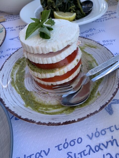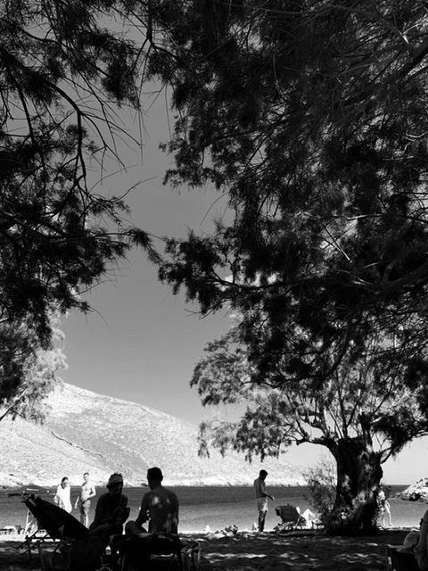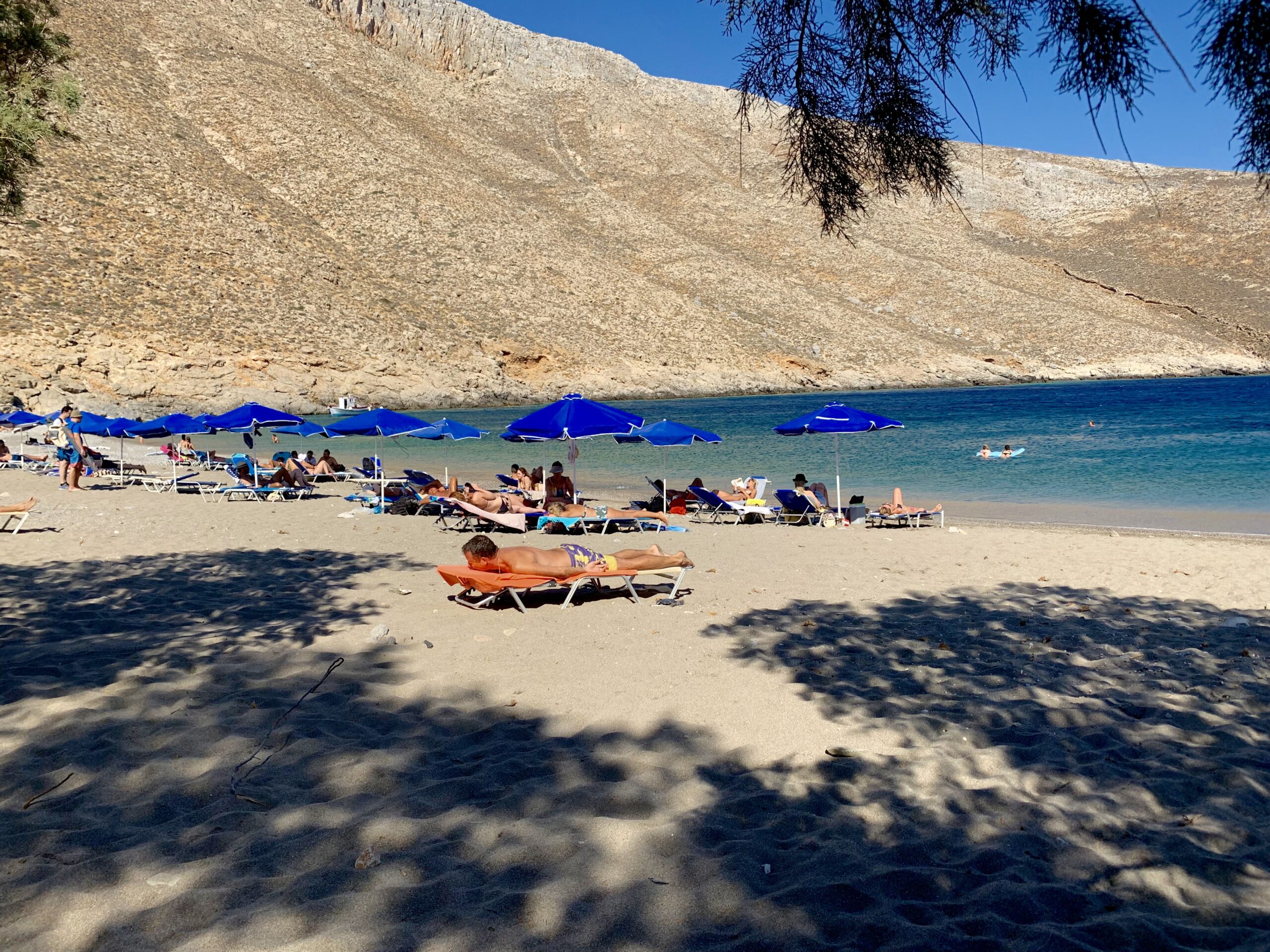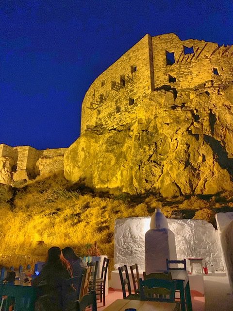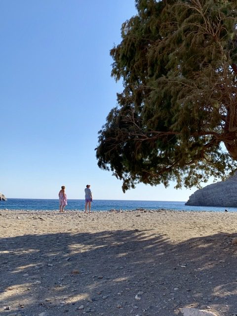 Most of the island is stark and wild. We were lucky enough that our designated driver (always the same…!) is experienced and tireless. Treacherous tracks hurtle down to shingle bays such as Vatses, with a rocking beach bar, and Kaminakia, where Linda’s farm-to-tabletaverna serves yummy, real food and the best roast goat in the Dodecanese. Livadi, is a sort-of-resort beach surrounded by citrus orchards (too busy for our taste).