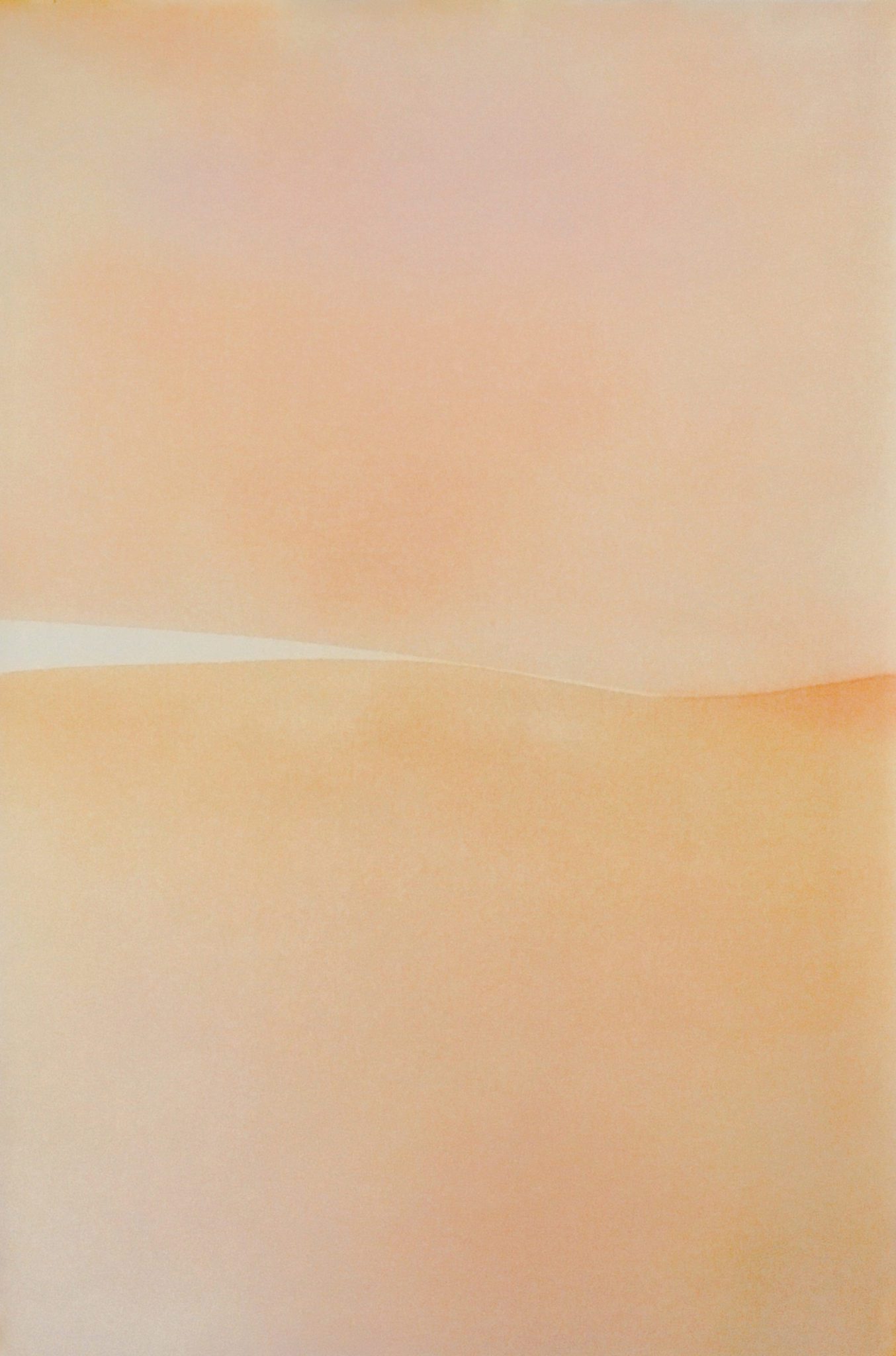 The Atacama watercolors on paper are uplifting in their neutrality. Nikomachi’s original wash-out technique rises up to sub-divisions of indeterminate hues. The observation is filled with doubt: are the divisive lines across the frames open to osmosis? Can the perceived colors be clearly named? Still, despite the uncertainty, they emanate a sense of peace through their fading yet vibrant palette and supple over-layering.