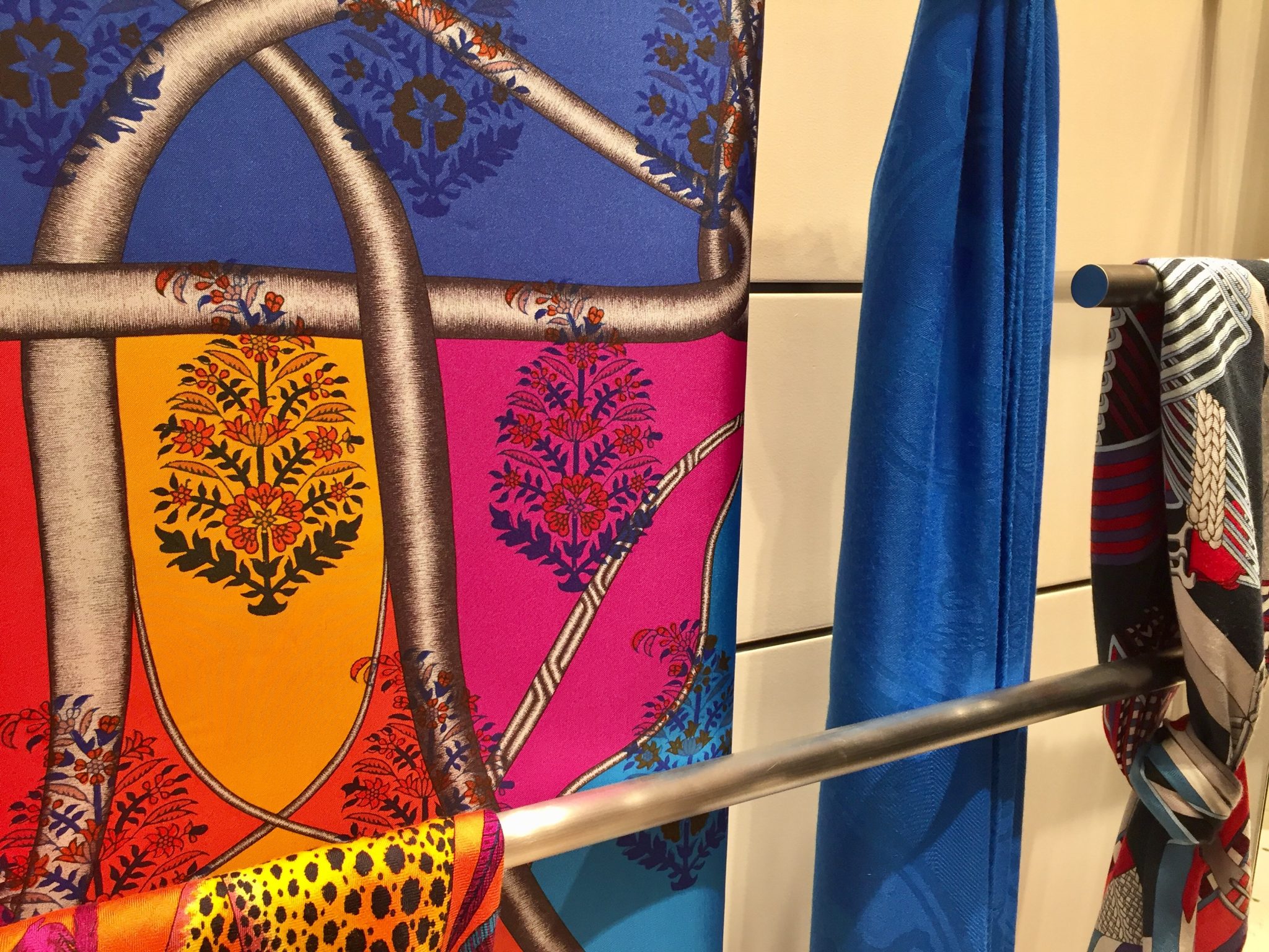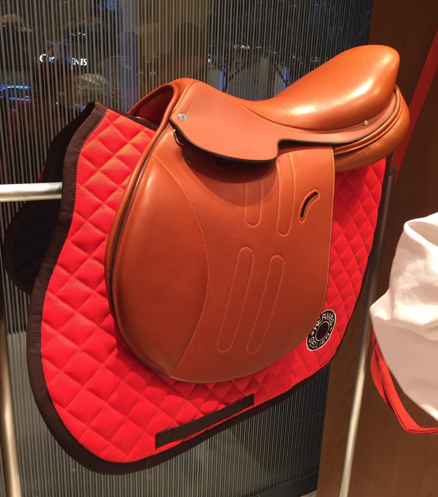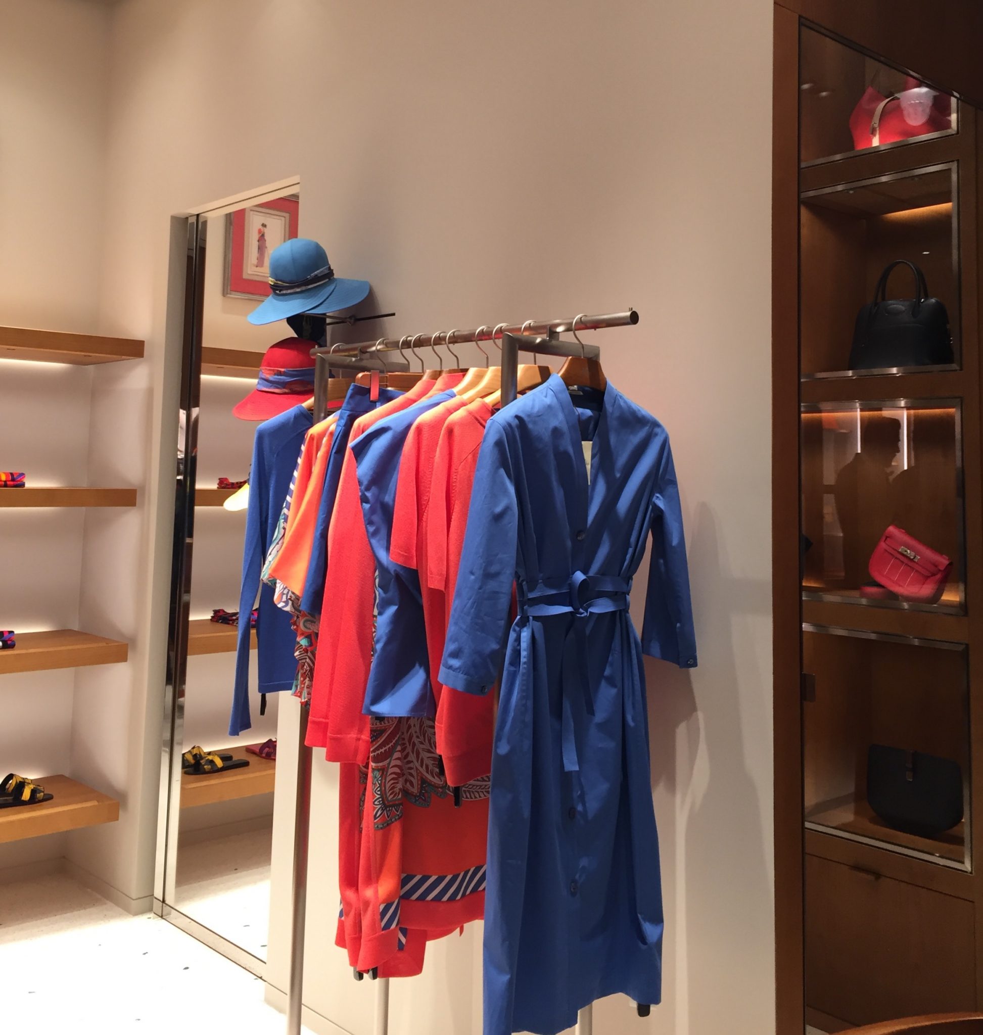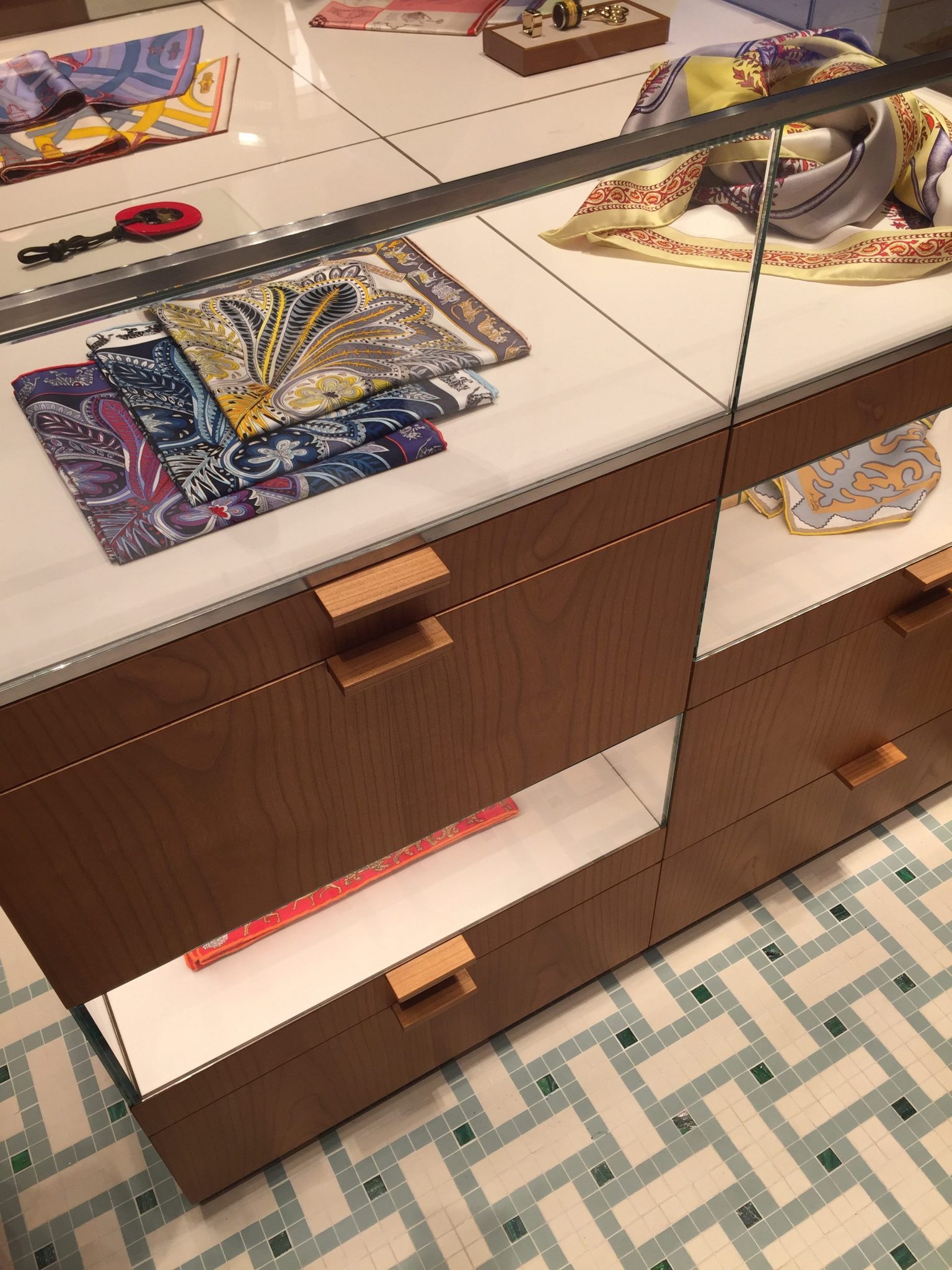 All the seating in the store is issued from the Shanghai line, designed by RDAI exclusively for Hermès, and upholstered in leather in a variety of colours.