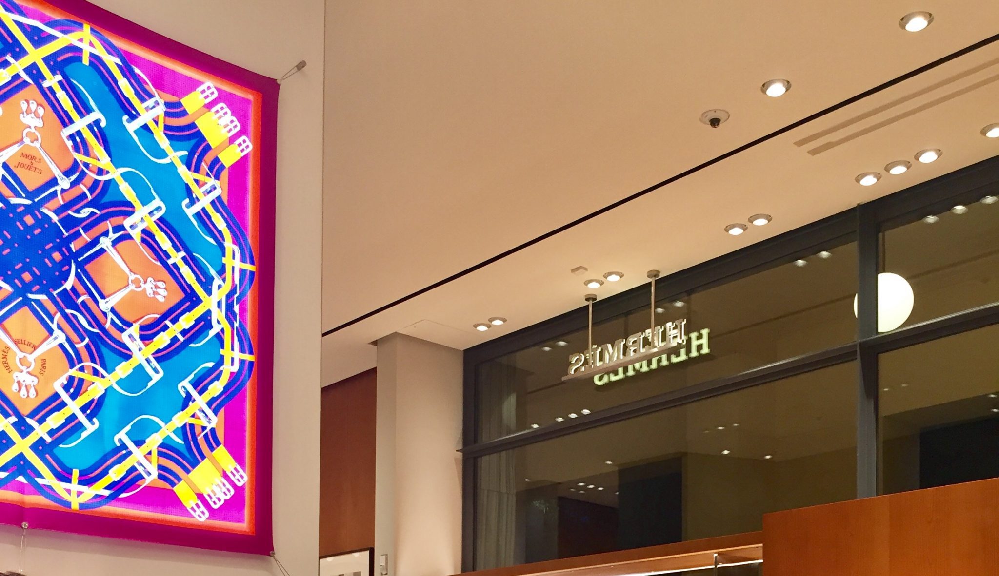 Highlighting the craftsmanship and hand-made artistry of all Hermès creations on display, understated design materials have been used throughout the shop that please both vision and touch: European cherry wood in satin matte finish for the furniture, and all ironwork has been given a hairline finish. Meanwhile, a selection of matching fabrics have been used to line the store windows and displays, and fine leather covers the counter in the leather goods section.