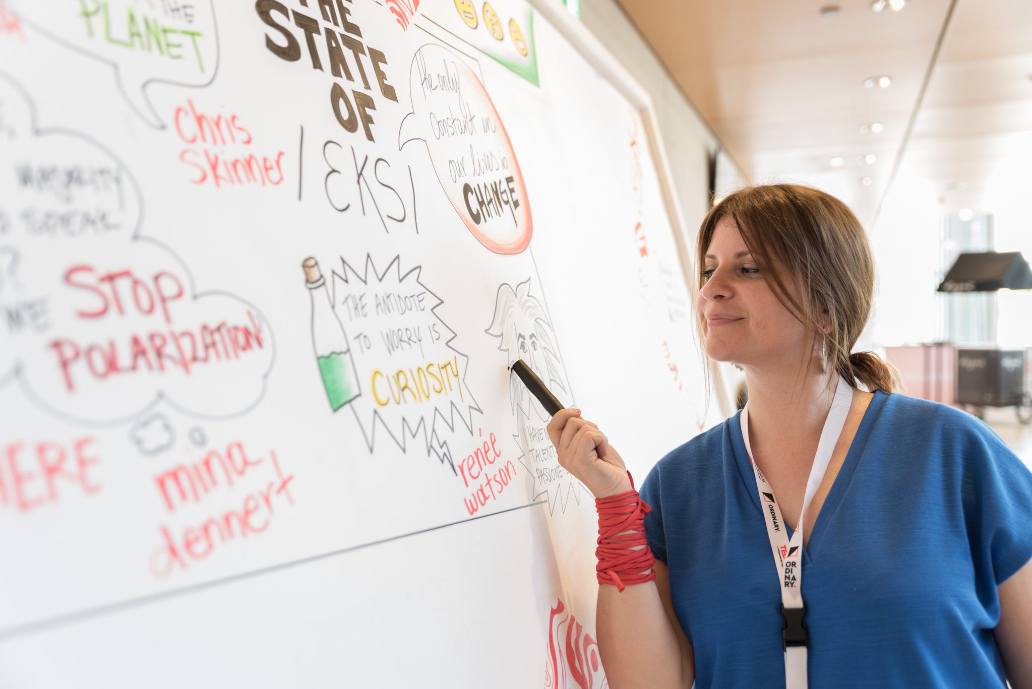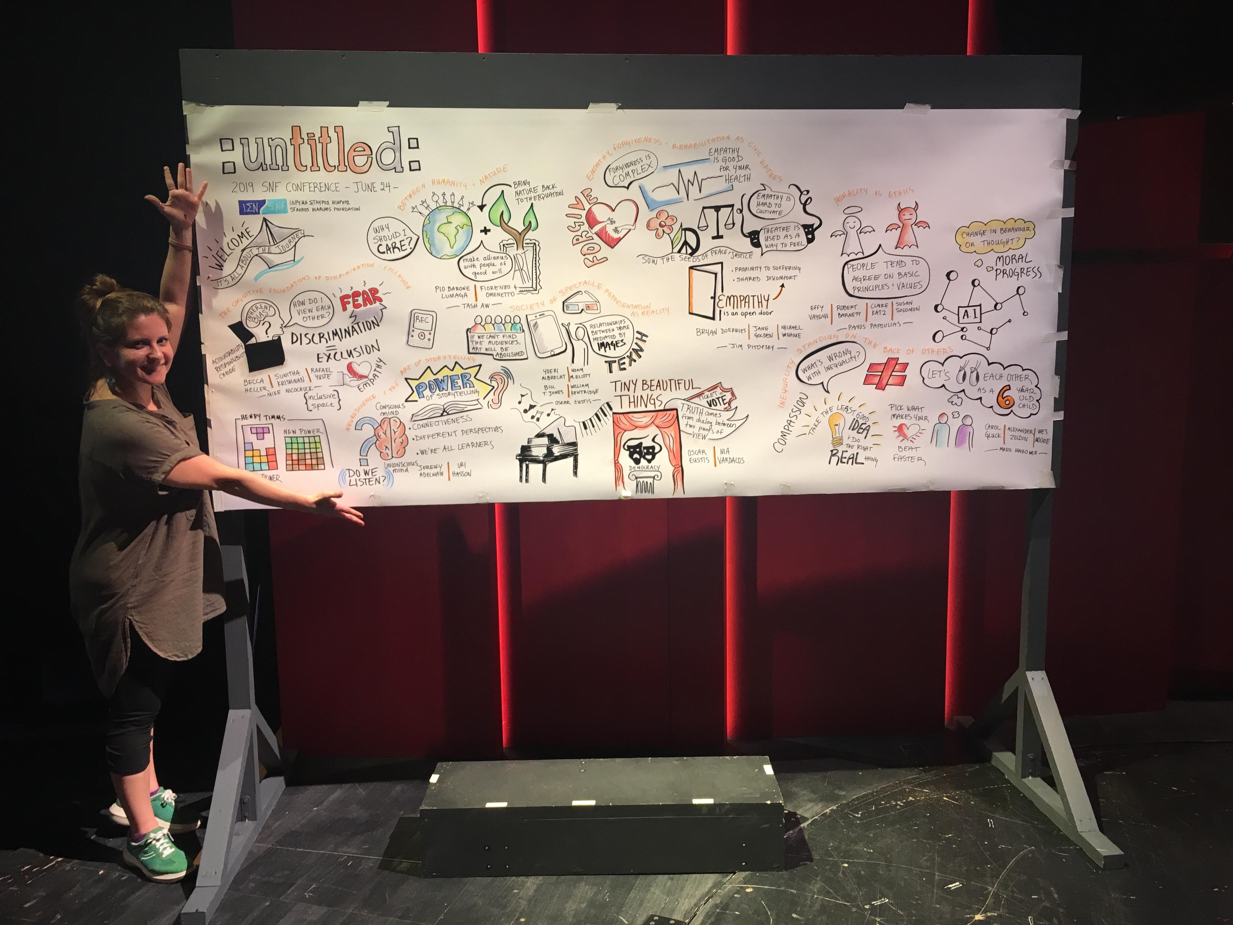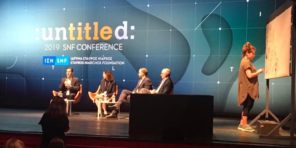 These days she’s working as a graphic recorder, a process in which she hand-illustrates the content of meetings and conferences, turning the complex ideas discussed into simple visuals. She’s created visuals for TEDxAthens and most recently at the 7th Annual Stavros Niarchos Foundation Conference “Untitled.”