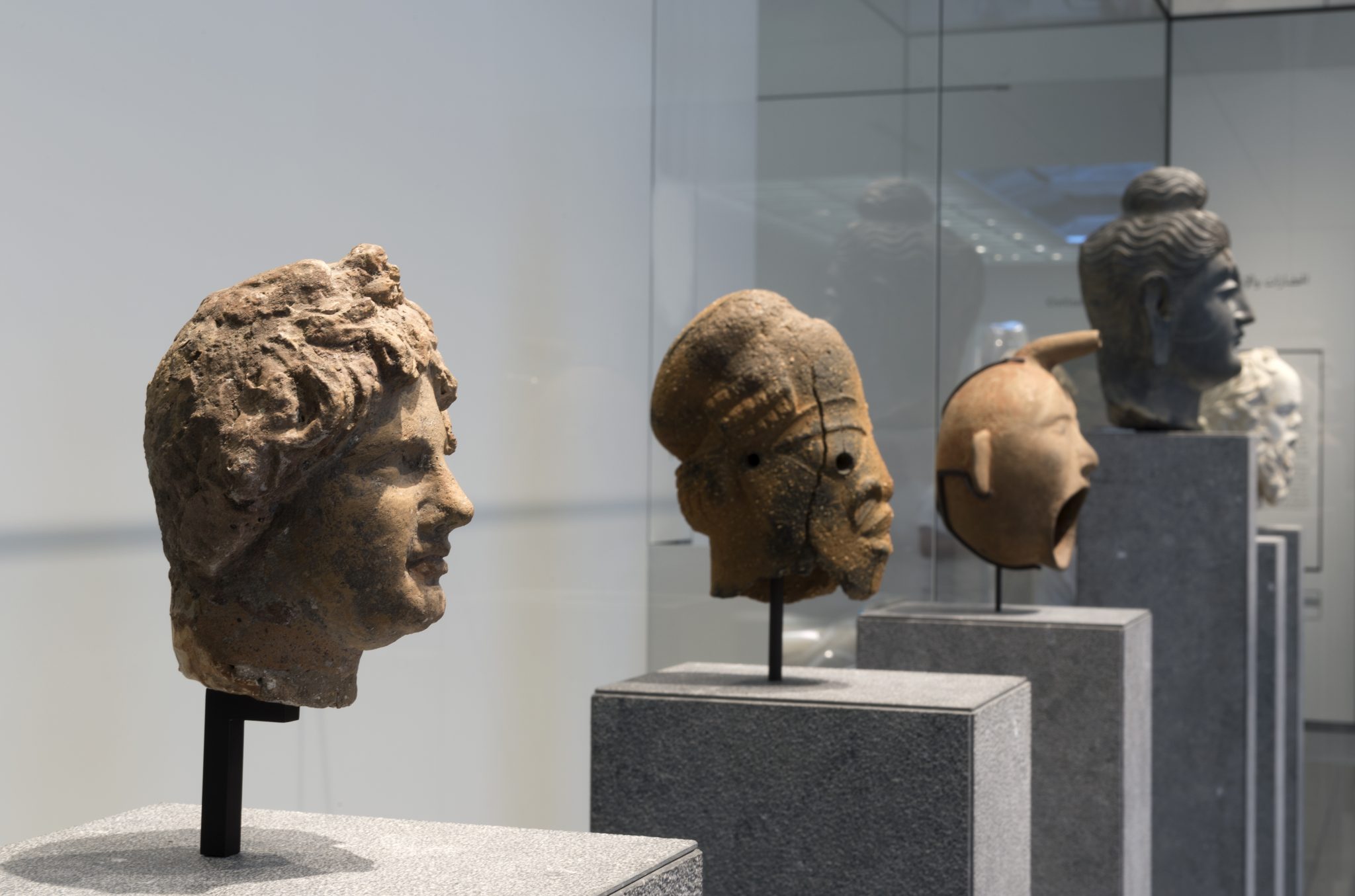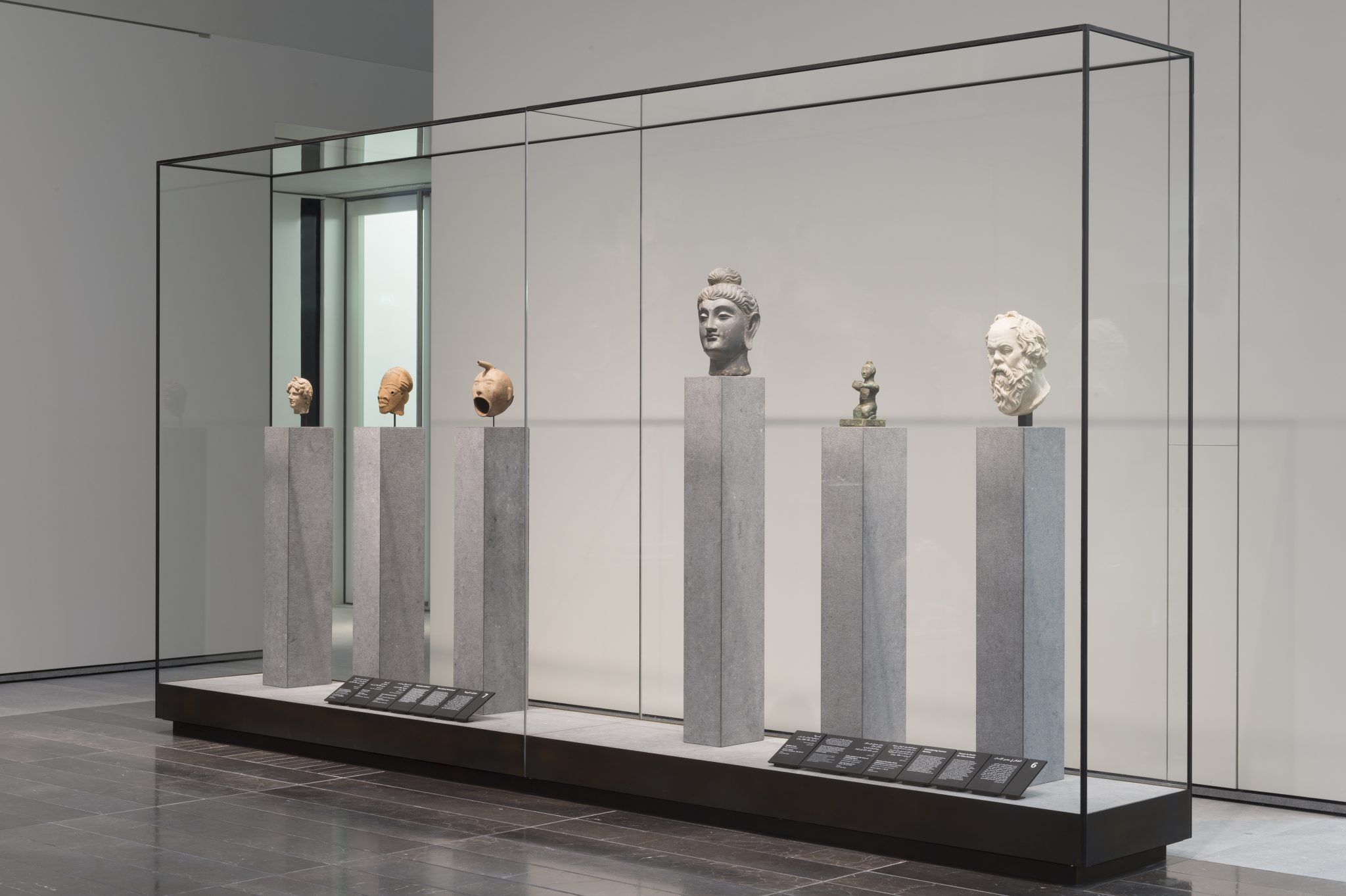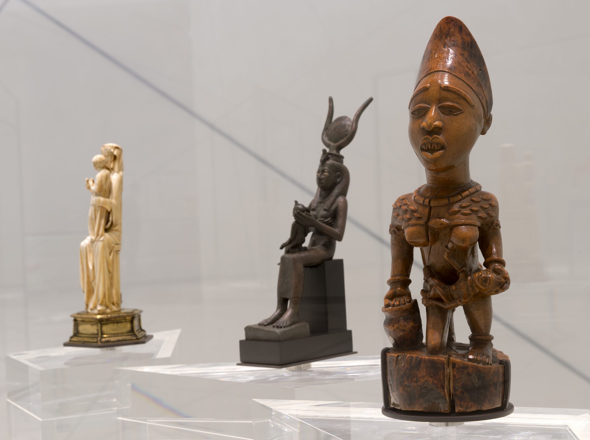 Visitors encounter works from universal religions, including sacred texts such as a Leaf from the “Blue Quran”and a Gothic Bible, as well as a Standing Bodhisattva from the 2nd or 3rd century and a white marble Head of Buddha from China.