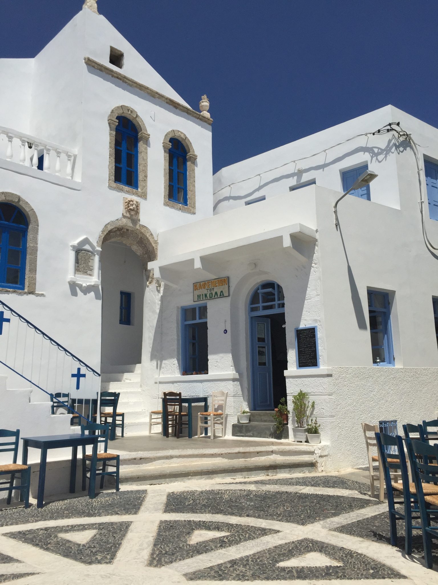 The terrace offers a breathtaking view to the sea and the volcano which can be accessed from the village. Surrounded by olive trees and grapevines, Emporios village is truly beautiful.