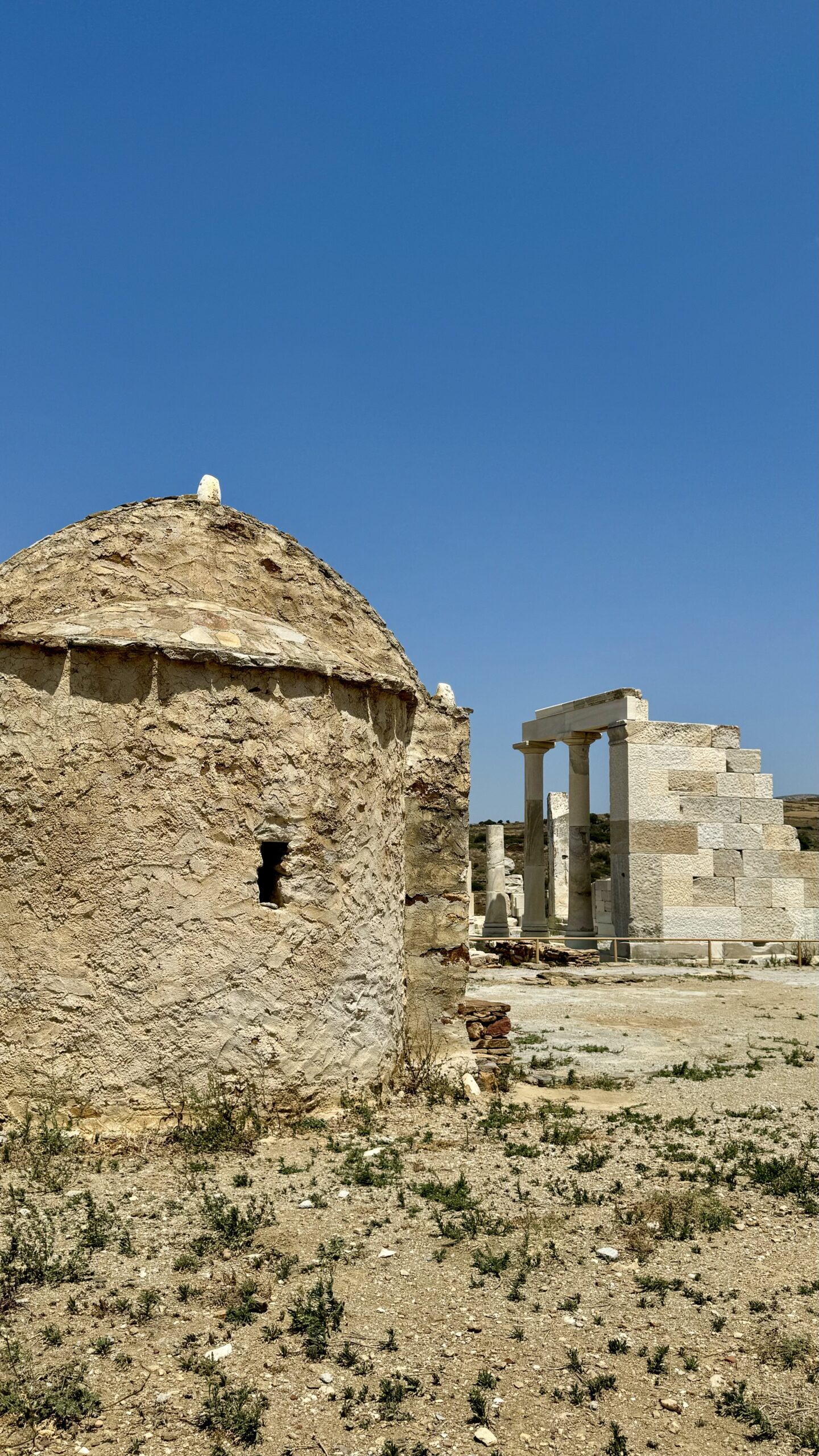 We flew on a very early flight from Athens to Naxos (to a horrible, filthy airport I must add) and were supposed to board the same day a ferry to Schoinoussa. On that day it was extremely windy so our boat ride was cancelled. We had to spend the next 24hours on Naxos Island (not my kind of an island for a summer holiday but ok for others). To make the most of it, we found rooms at a “Faulty Towers” kind of hotel near the port, rented a car and visited the Temple of Demeter and the quaint mountain villages. That part was enjoyable. We took the boat the next day.