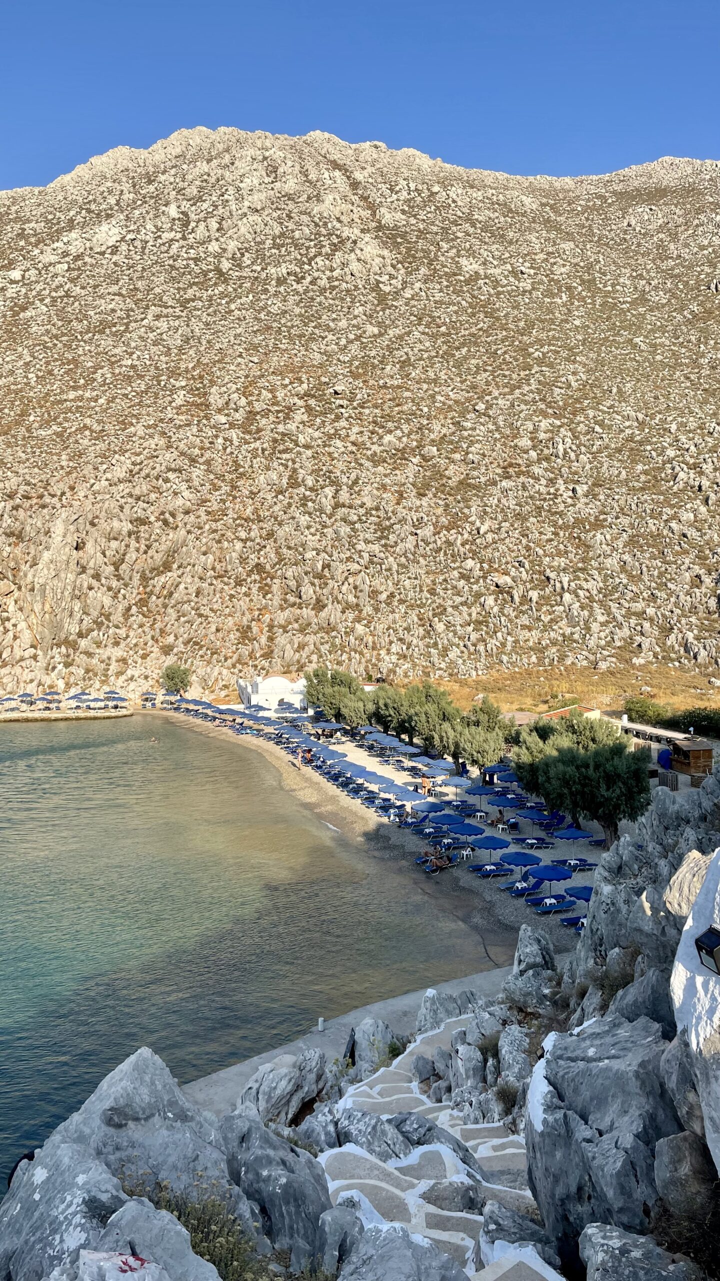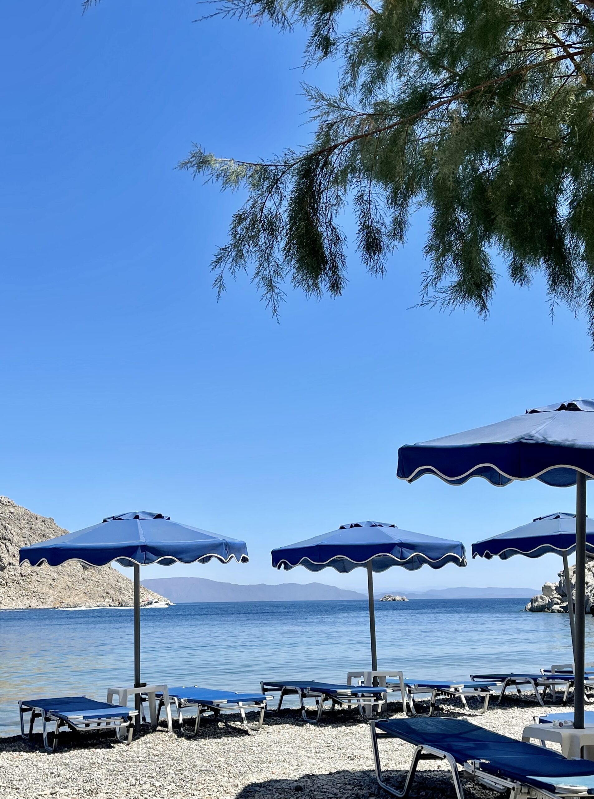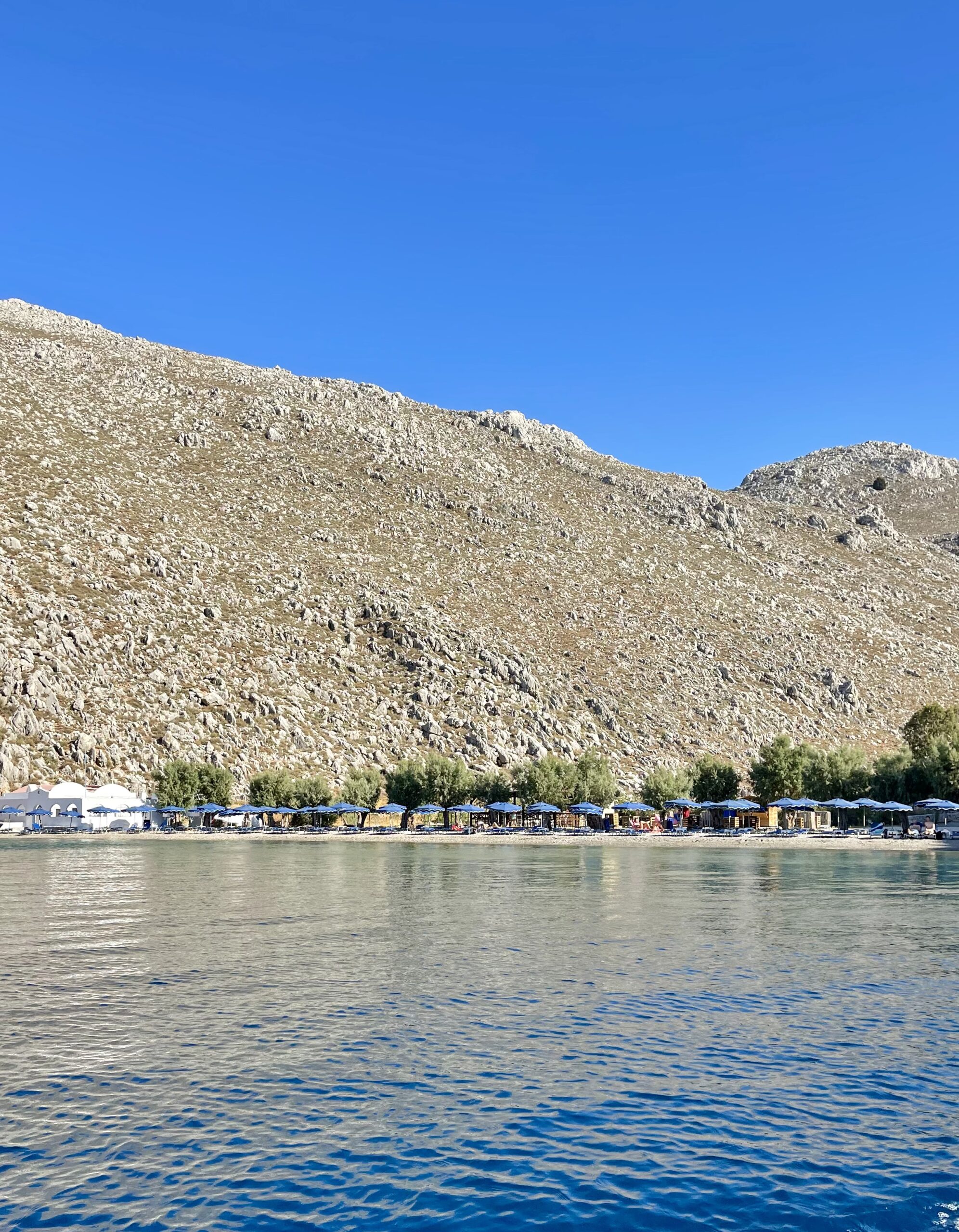 Agios Nikolas – Our beach of preference! Organised beach with shady trees and a good taverna, run by very friendly people. Can be reached by the small boats or on foot via a 20 minute pathway from Pedi. I spent hours daydreaming there, staring at shades of blue and listening to Manos Hatzidakis Gioconda’s Smile!