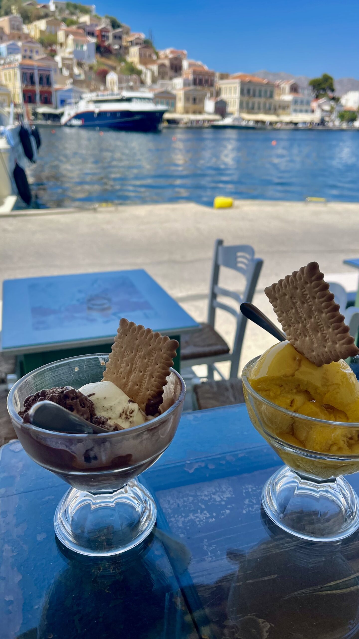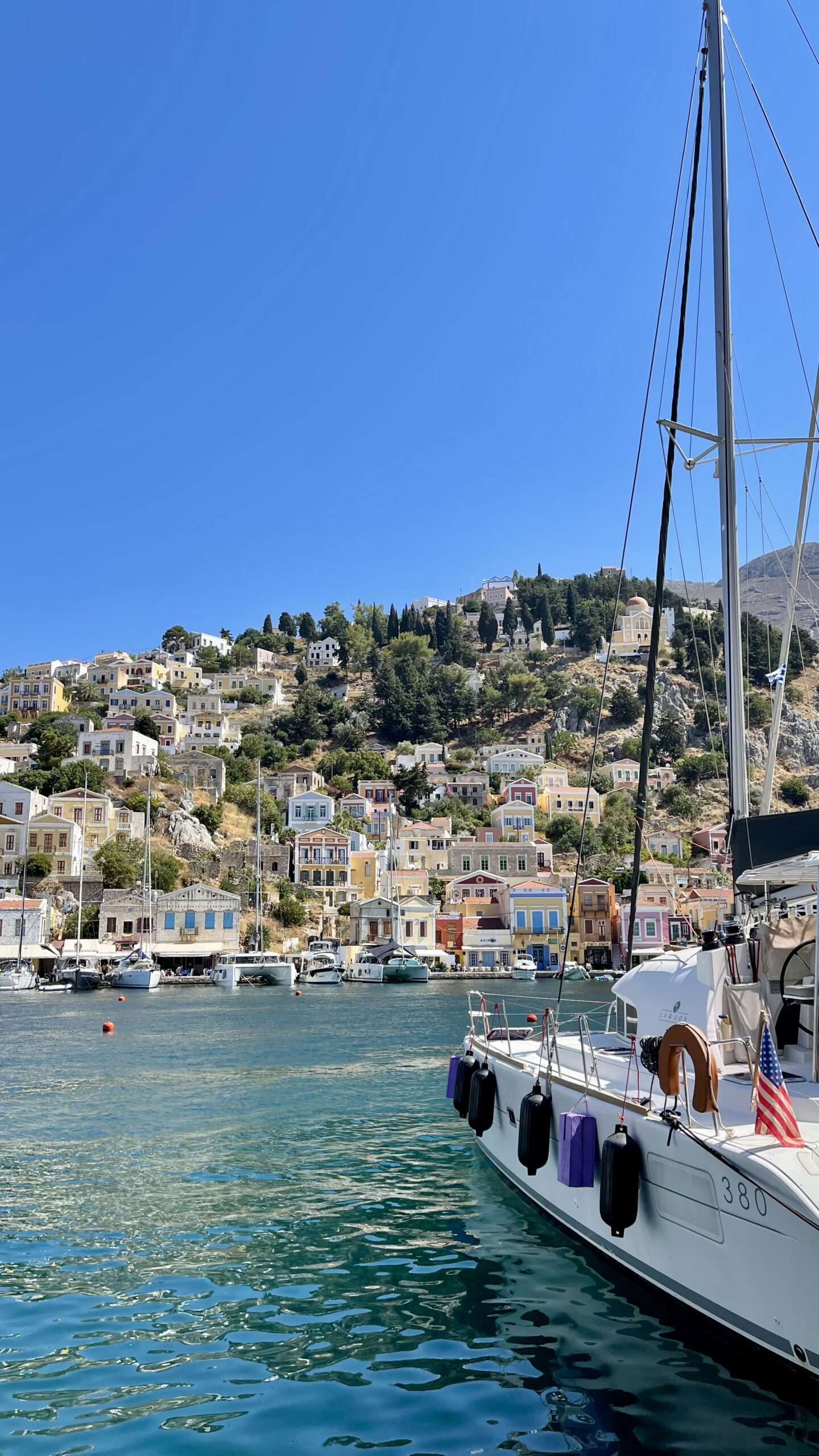 Symi is a Greek island, part of the Dodecanese island group, very close to the Turkish coastline. Needless to say that the small port was full of massive yachts with Turkish flags.