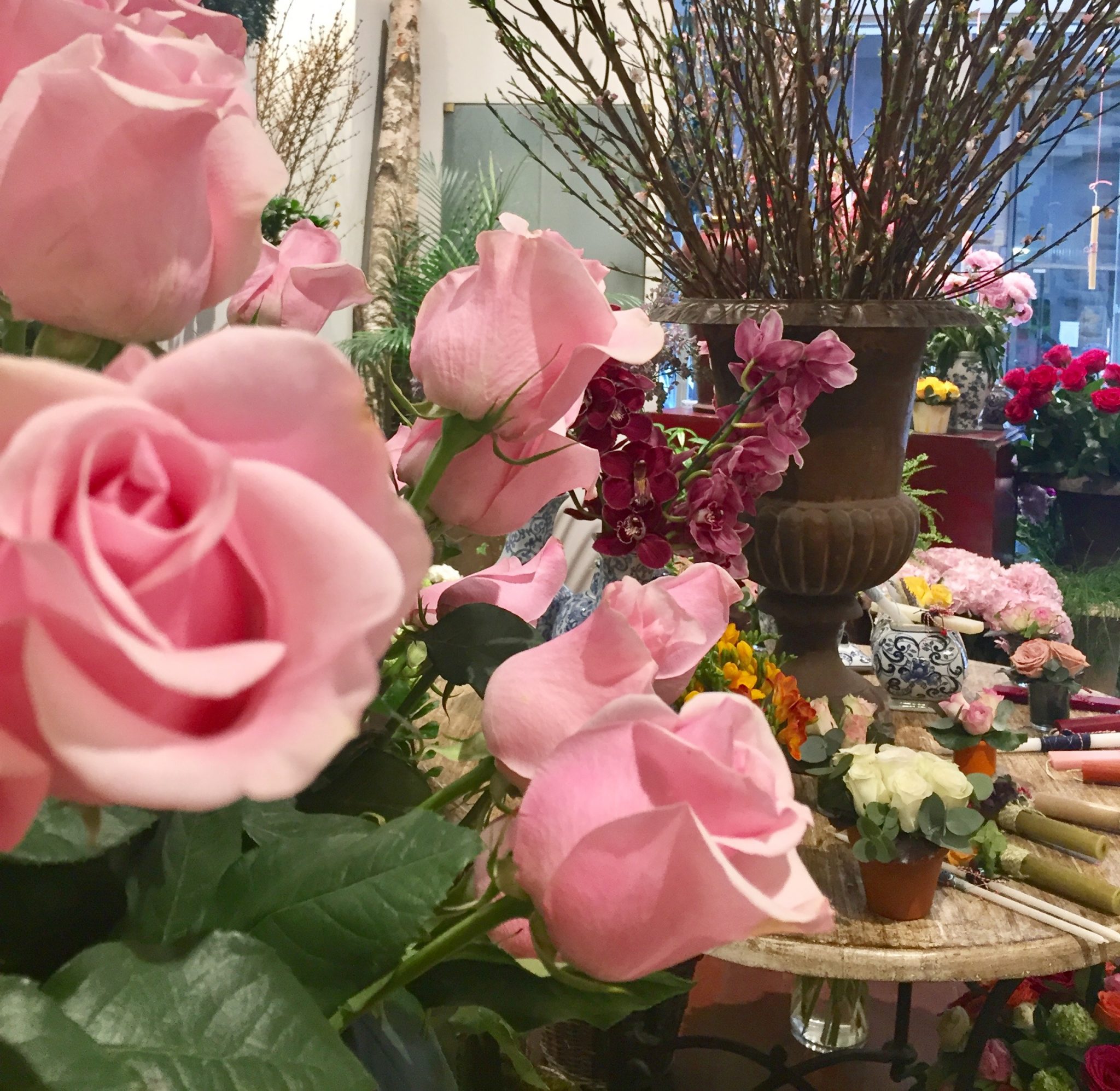 I always pause and stare at the beautiful flowers displayed at the window and inside the shop…Majestic roses of all colours, Peonies, Orchids, Amaryllis, Tulips, Sunflowers, Anemones…