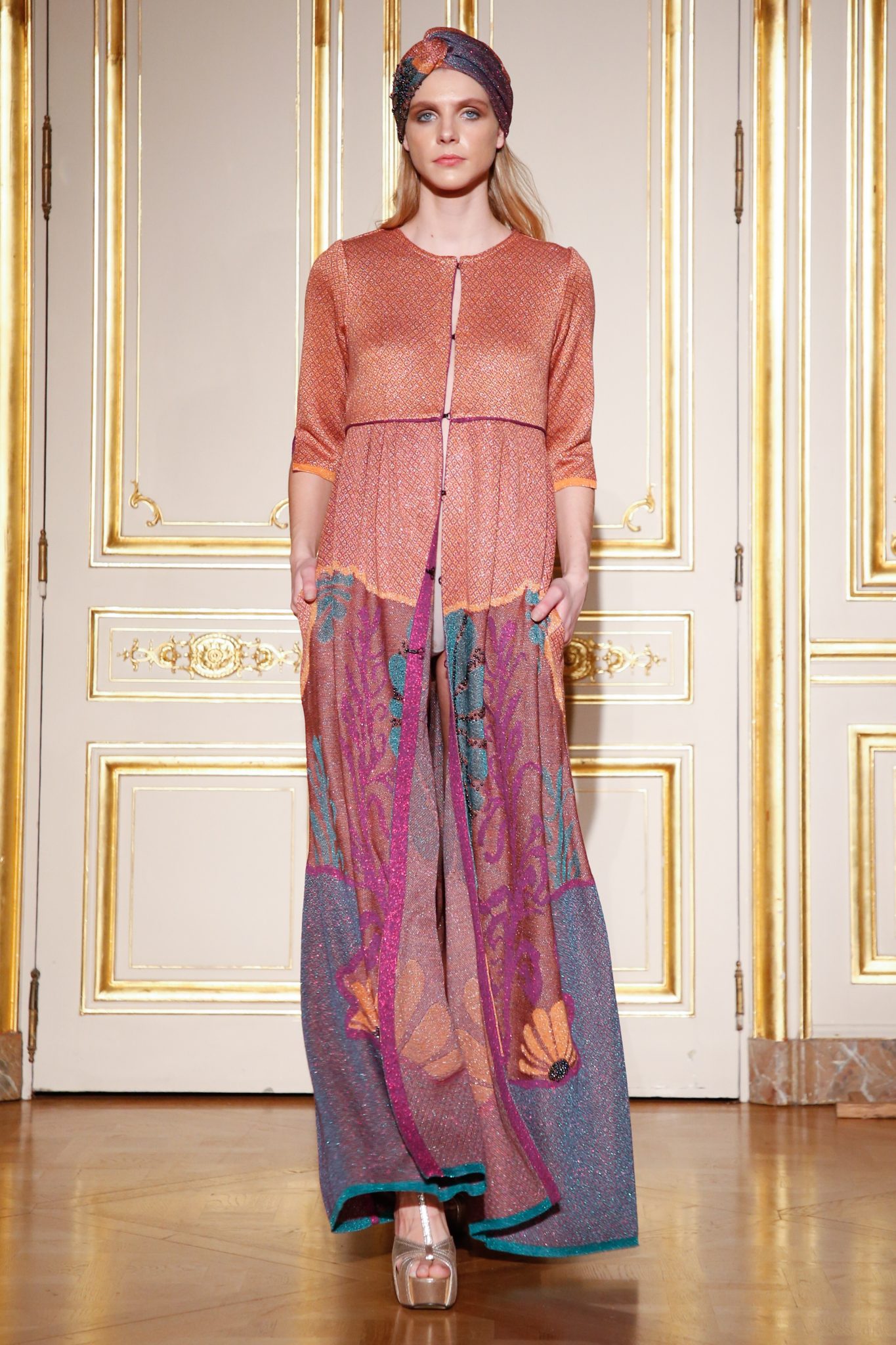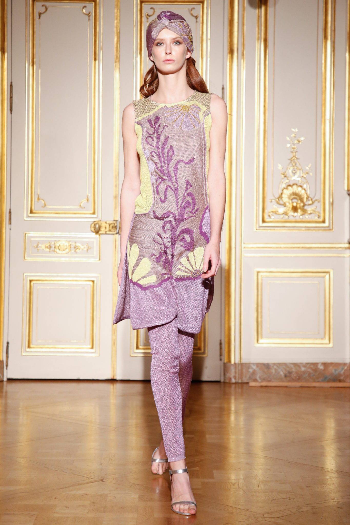 A playground of flower patterns with silk viscose and metallic yarns, where elaborate embroideries decorate the luxurious knit fabrics creations.